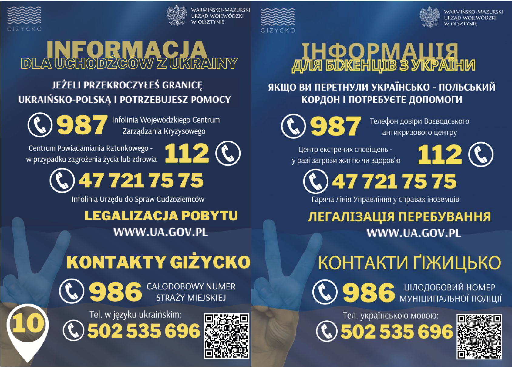 Warmińsko-Mazurski Urząd Wojewódzki w Olsztynie zebrał na plakatach i ulotkach wszystkie najważniejsze informacje dla uchodźców z Ukrainy.